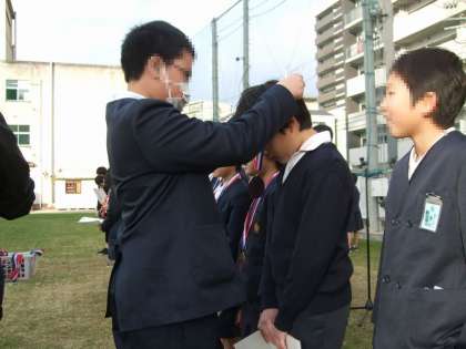 本日の児童朝会で、11月に開催されたミニオリンピックの表彰式がありました。各学年の1位と全学年での総合1位〜3位までが表彰されました。総合で表彰されたチームは、メダルを運動委員会の児童にかけてもらって、みんなとてもうれしそうでした。来年のミニオリンピックでも頑張ってほしいですね。
