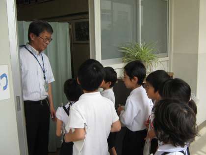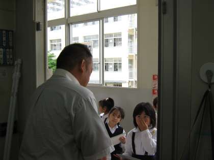 のぞいてみるとちょうど一年生が学校探検で校舎を回っているところでした。