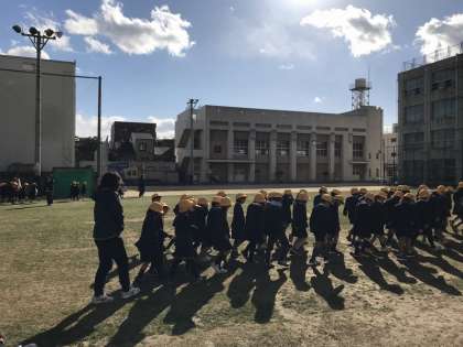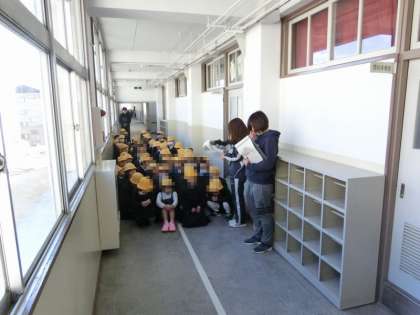 先日、地震と津波を想定した避難訓練が行われました。まず、地震では机の下に隠れて、揺れがおさまってから、運動場に避難しました。そして、津波が来たことで、3階以上避難しました。しゃべらず、敏速に、行動することができました。訓練を何回もして、もしもの時に備えていきます。