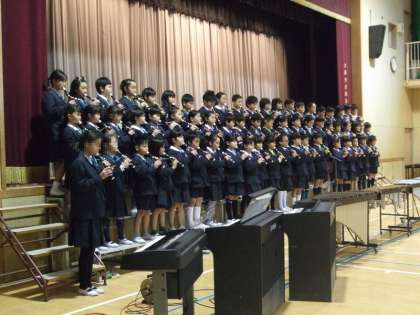 また、合唱は天空の城ラピュタで有名な「君をのせて」でした。2部合唱のきれいなハーモニーが講堂に響き渡りわたりました。