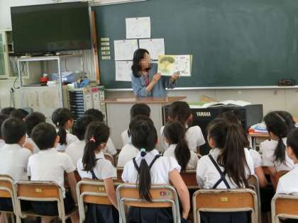 関目小学校図書館ボランティア「おはなしビスケット」の皆さんで月1回、読み聞かせをしていただいています。