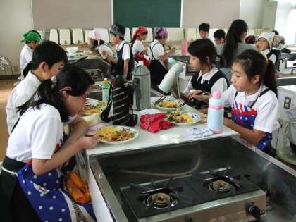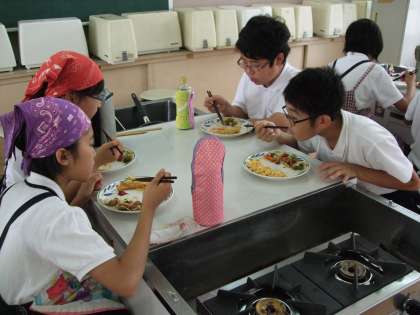 オムレツ・目玉焼き・スクランブルエッグ……どの班も上手に作っています。