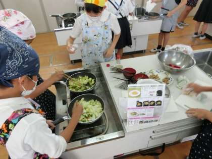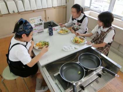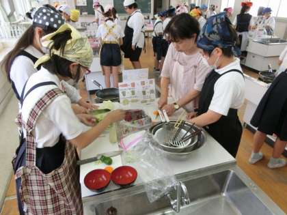 どの班も丁寧に野菜を切り、フライパンで炒めることが出来ていました。協力して調理しながら片付けも並行してていたので、食べた後の片付けも素早くすることができていました。味も自分たちで作ったこともあり、とてもおいしいという声が聞こえてきました。
