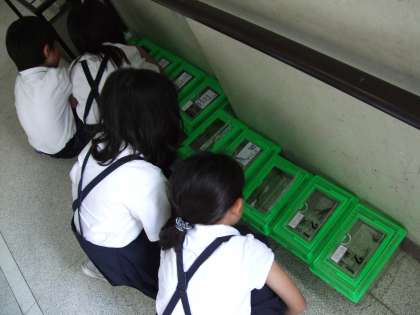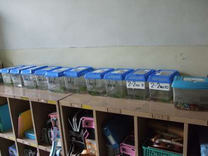 飼育ケースには、自分たちの名前も書いて責任を持って世話をしています。