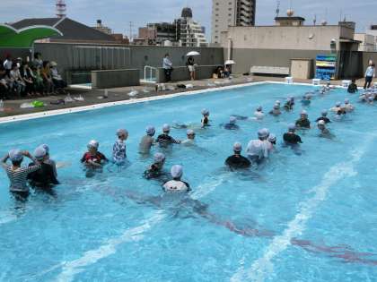 水の中では、服を脱ぐのはとても難しく、大変なことも学びました。いつもの水泳指導とは違い、子どもたちはとても楽しそうでした。