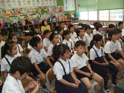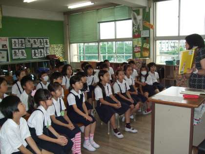 今日は、1・2・4年生が絵本の読み聞かせをしていただきました。