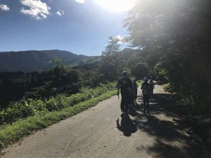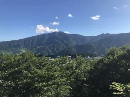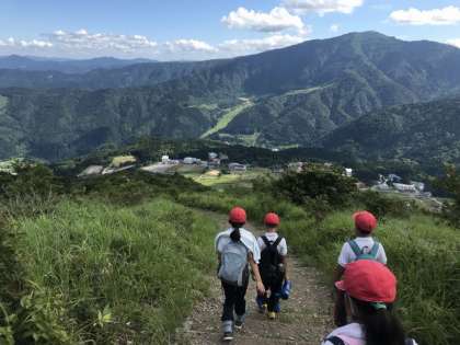 山登りで火照った体を爽やかで涼しい風が冷やしてくれているようです。写真からも分かる通りのきれいな山の景色が、頑張った児童の心を励ましてくれているようです。この後、頑張って下山し、宿舎に戻りました。