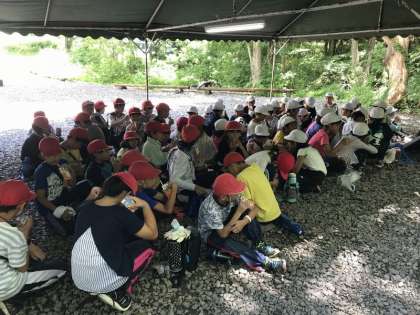 勾玉作りの後はおやつにオレンジジュースを飲みました。