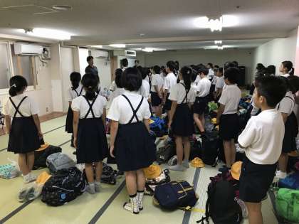 閉舎式では、児童代表のあいさつ、宿舎の方のあいさつ、校長先生のお話を聞きました。児童は名残惜しそうな様子でしたが、予定よりも少し早くバスは宿舎を出発し、大阪へ戻ります。