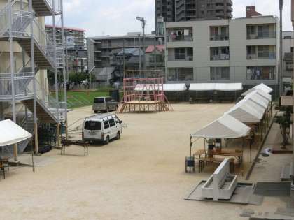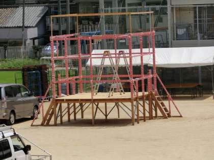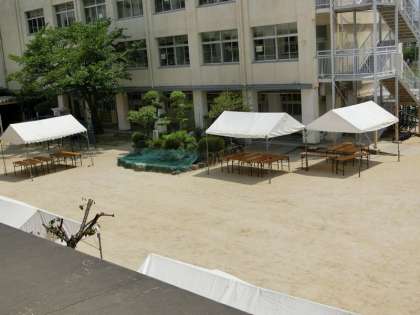 学校では、台風12号の影響が心配ですが、関目まつりの準備が行われています。