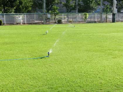 毎日、スプリンクラーが朝と夕方の2回作動して、水まきをしています。