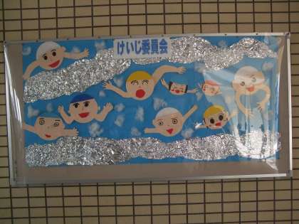 プール水泳の時間、水しぶきをあげて頑張っている子どもたちを作品に