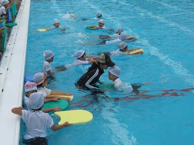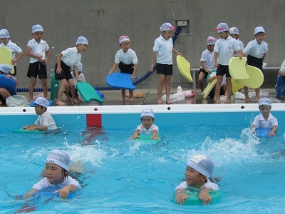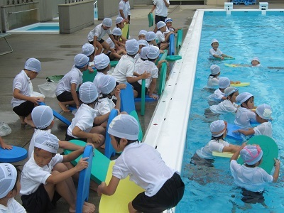 初めての着衣泳です。水着の上から体操服をきるのは、体が濡れていて