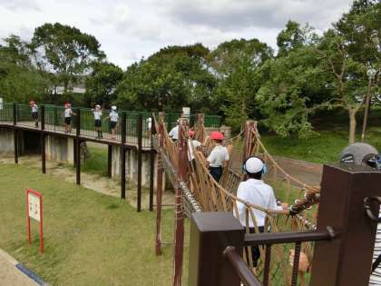 その後は「きょうりゅう広場」や、「とりで広場」というお城みたいに遊具が設置されているところで時間いっぱい遊びました。最近不安定な天気が続いていましたが、この日は気持ちの良い天候で過ごすことができました。また、子どもたちはルールを守って楽しく遊ぶことができました。