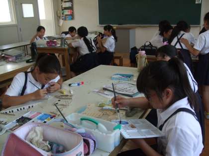木が絵の具を吸い取るので、ていねいに色塗りをしないといけません。