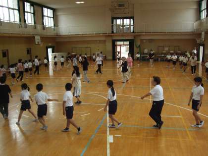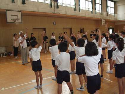 軽快な音頭にのって踊られる地域の方々をお手本に、子ども達も汗をかきつつがんばっていました。