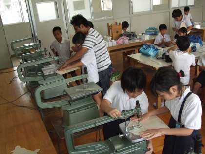 5年生は、はじめて「電動のこぎり」を使っての学習です。