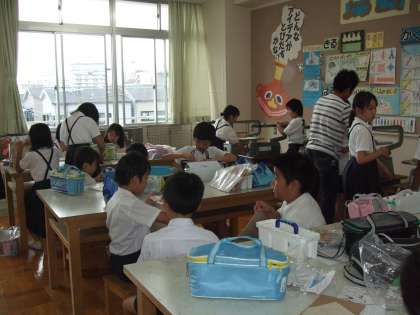 板の動かし方を先生に教えてもらい、友達とペアーを組んで板を切っていきます。