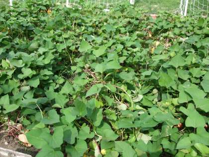 実をつけています。すぐ横の2年生のイモ畑も元気に育ち緑の葉を大きく広