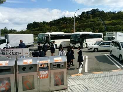 宿舎を出てまずは嬉野パーキングエリアにつきました。バスの中ではビデオを見て過ごしていました。