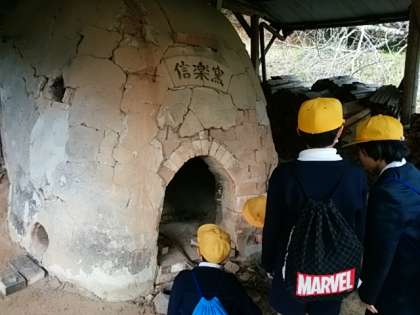 お昼ご飯をいただいた後はのぼり窯の見学をしました。大きな窯にアカマツの木をいれ、1250度まで温度をあげて陶芸を焼くそうです。興味深そうに窯の内部までじっくりと観察していました。