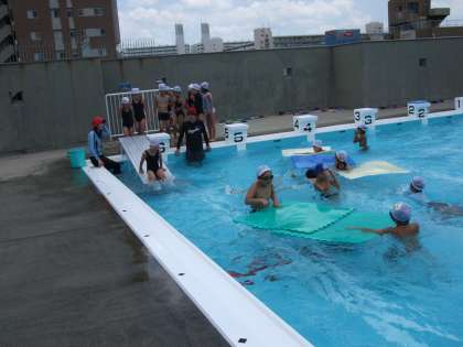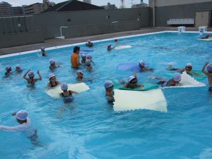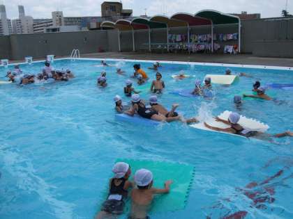 夏季プール開放時に出している浮き島もじょうずに順番を守って使っていました。