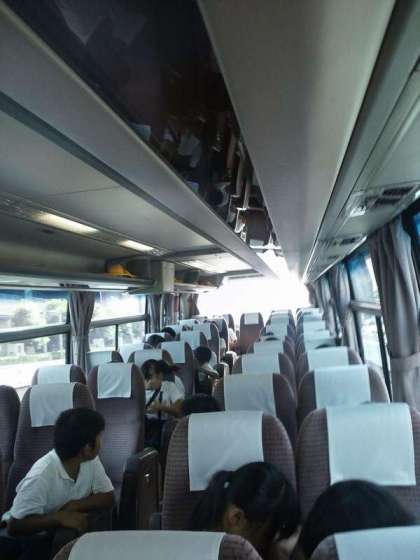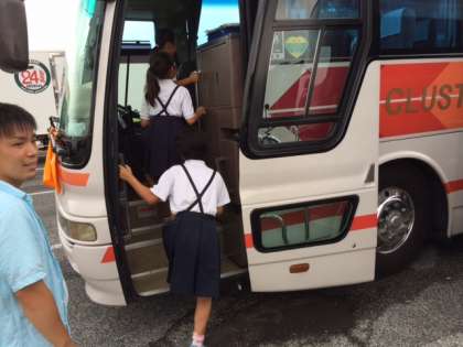 今朝、無事に全員そろって林間学習に出発した5年生の様子が届きました。