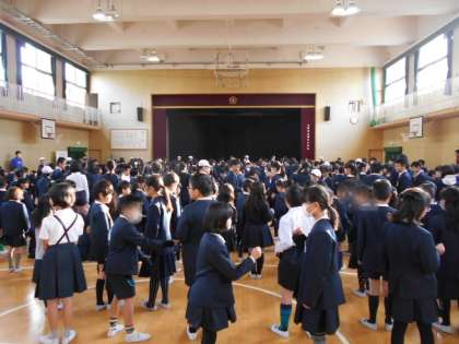1月17日(木)の児童集会で『船長さんの命令』をしました。