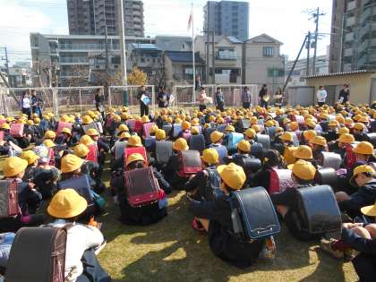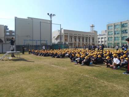 子どもたちは、真剣に取り組み、昨年度よりも早く運動場東側に集まりました。その後も3階以上にも避難できました。