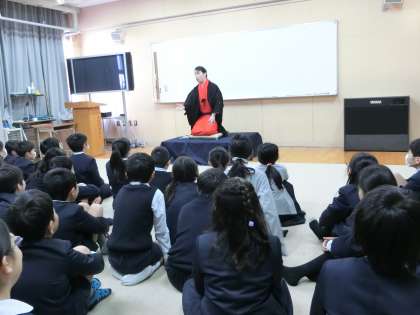 4年生は落語教室を行いました。笑福亭智之介さんが毎年来ていただいています。