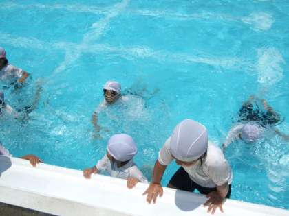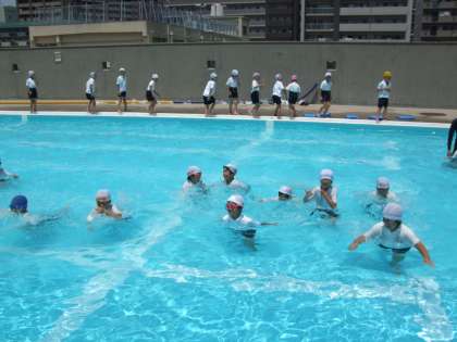 天候の関係で7月10日に変更して、低学年の着衣泳を行いました。