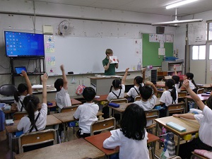 食べ物や色など、英語を表現することに挑戦しながら楽しくゲームに取り組みました!