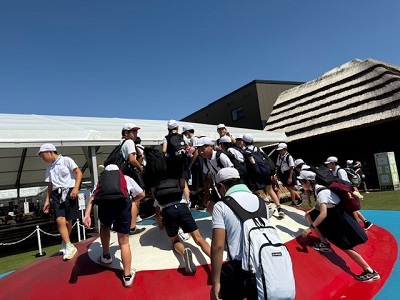 大屋根リングの上を歩いたり、パビリオンを楽しみました。