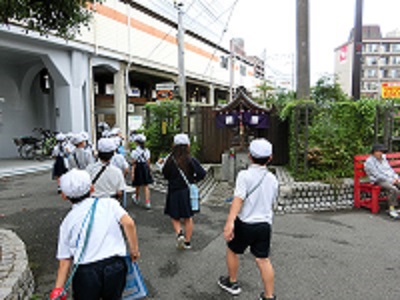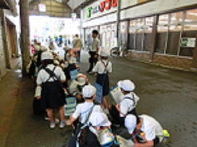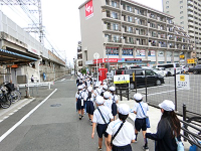 学校から公園‐郵便局‐スーパーマーケット‐商店街‐駅と、気づいたことをメモしながら、みんなでたんけんしました。自分たちの住んでる町をあらためてたんけんすることで、新しい発見が見つかったのではないでしょうか。