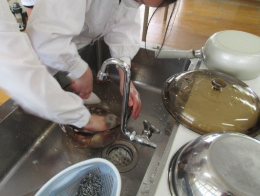 調理から片付けまで、班で協力しながら作業することができていました。