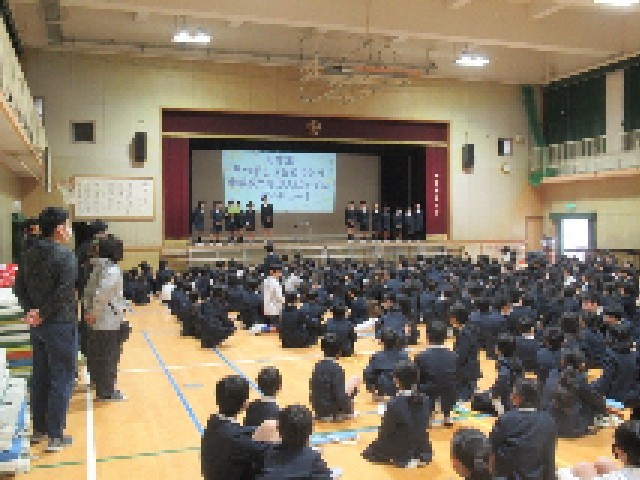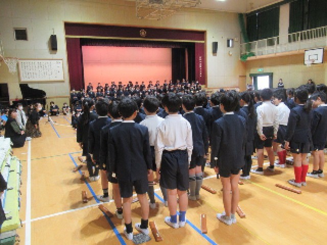 そのあとは1年生から5年生それぞれの学年から、歌や演奏などのお祝いのプレゼントがありました