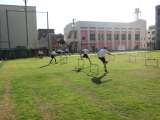 6年2組は、体育科でハードル走をしました。自分に合ったハードル間の距離や高さを選...
