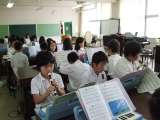 リズムよくリコーダーの練習をしています。しっかりとした指使いで友達の音をききなが...
