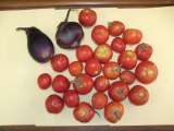 2年生の学習園で収穫されたナスとミニトマトです。 今年植えたミニトマト「凜々子」...