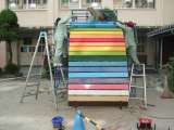子ども達の大好きな遊具を夏休みを利用して 管理作業員さんがカラフルな板に張り替え...