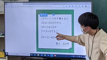「20を10の2つ分と考えれば・・・」と今まで学習してきたことをもとに自分たちで考えます。