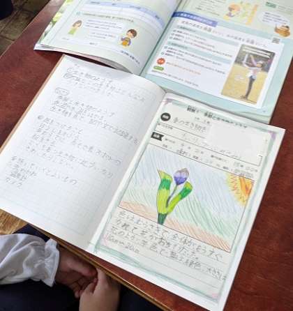 春の植物の観察で桜やチューリップを観察しました。細かいところまでよく見て色鉛筆で丁寧に描いています