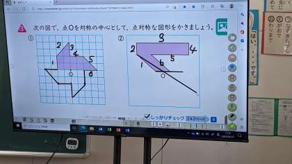 線対称の図形はかくことができても、点対称の図形は形がとらえにくく難しいです。