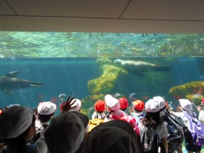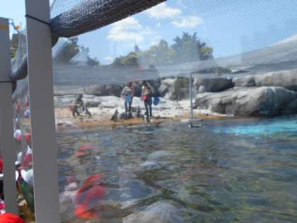 餌を食べるペンギンや目の前をシューっと泳ぐアシカに大興奮!