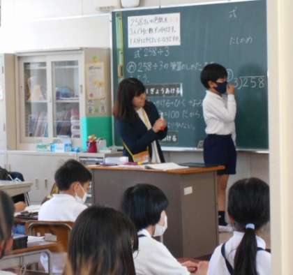 少し緊張している子どもの姿も見られますが、一生懸命学習に取り組んでいます。