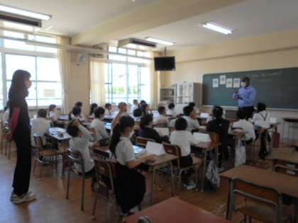 ペアで話し合ったり発表する中で英語の表現を覚えます。