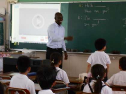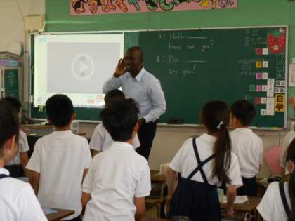 C-NETのフランク先生とあいさつの学習です。