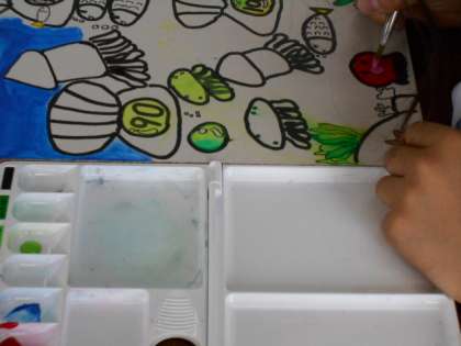 丁寧に丁寧に色を塗っています。