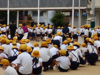 集会委員の子どもたちが出す4つのヒントを聞いて、班で答えを考えます。