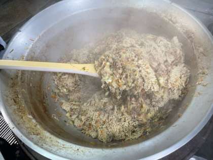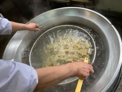 塩、こしょう、うすくちしょうゆ、こいくちしょうゆで味付けした和風の焼きそばです。乾燥した中華めんをゆでて、具と一緒にいためています。